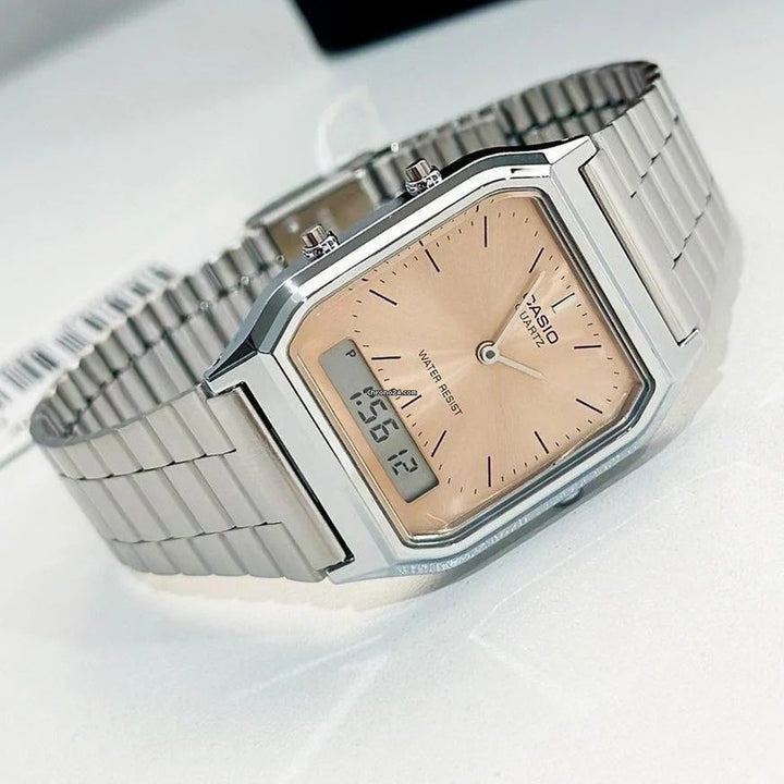 Casio Analogo- Digital Ref AQ-230A-4A-Plata-Oro Rosa