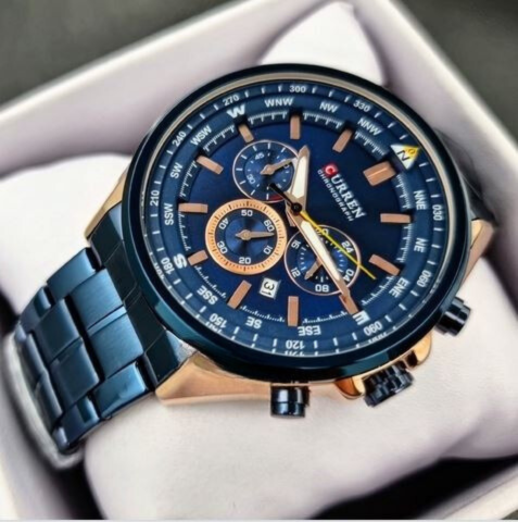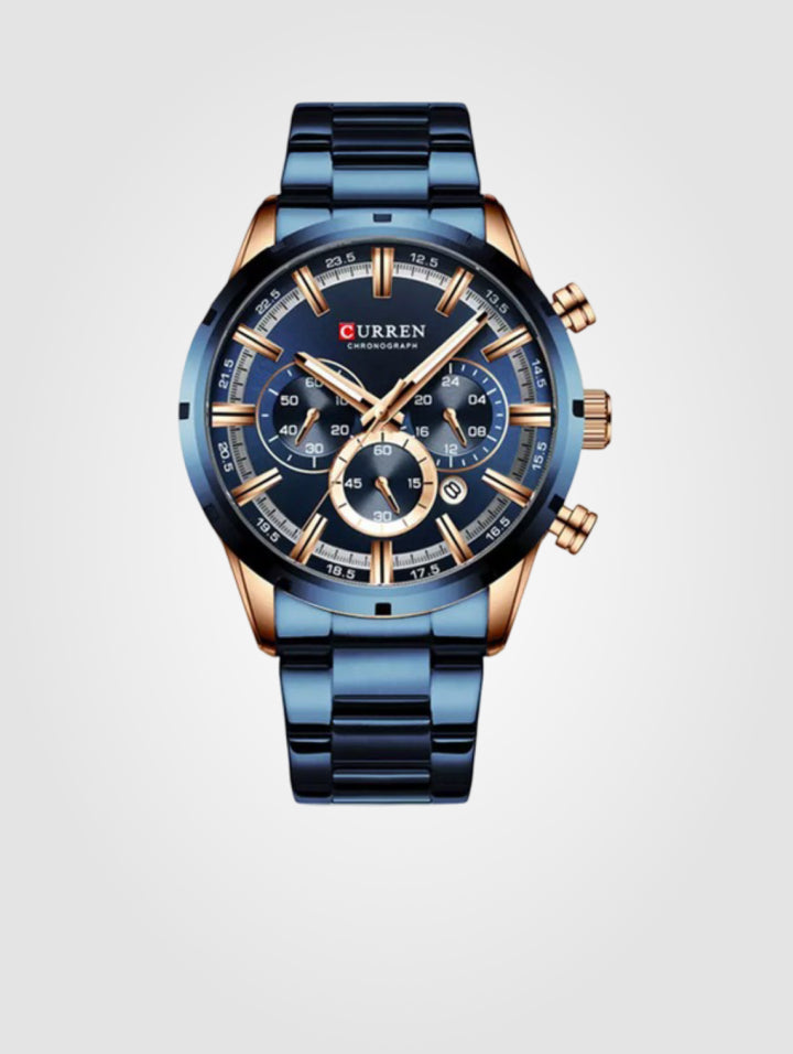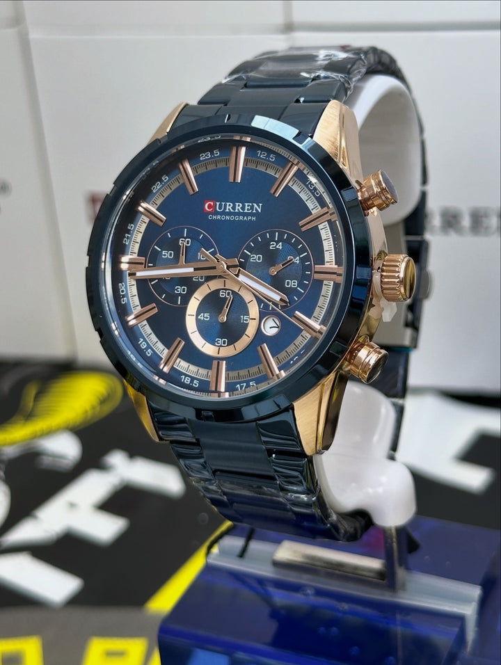 Curren 8355 Azul-Dorado para hombre, Acero Inoxidable-Resistente al agua