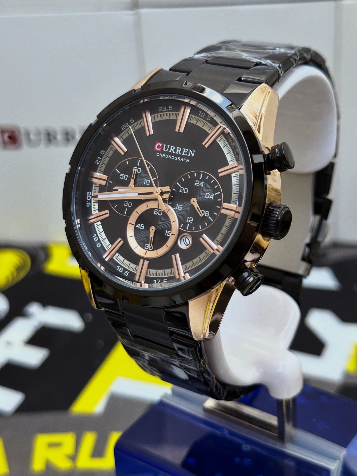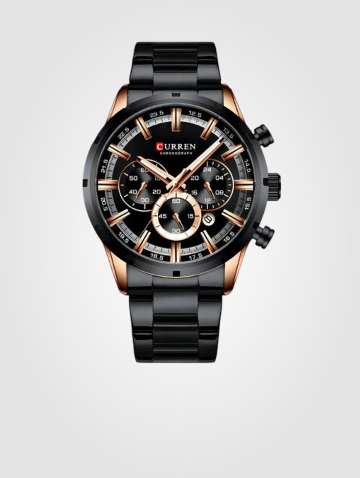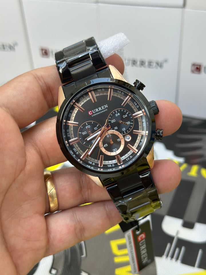 Curren 8355 Negro-Dorado para hombre, Acero Inoxidable-Resistente al agua