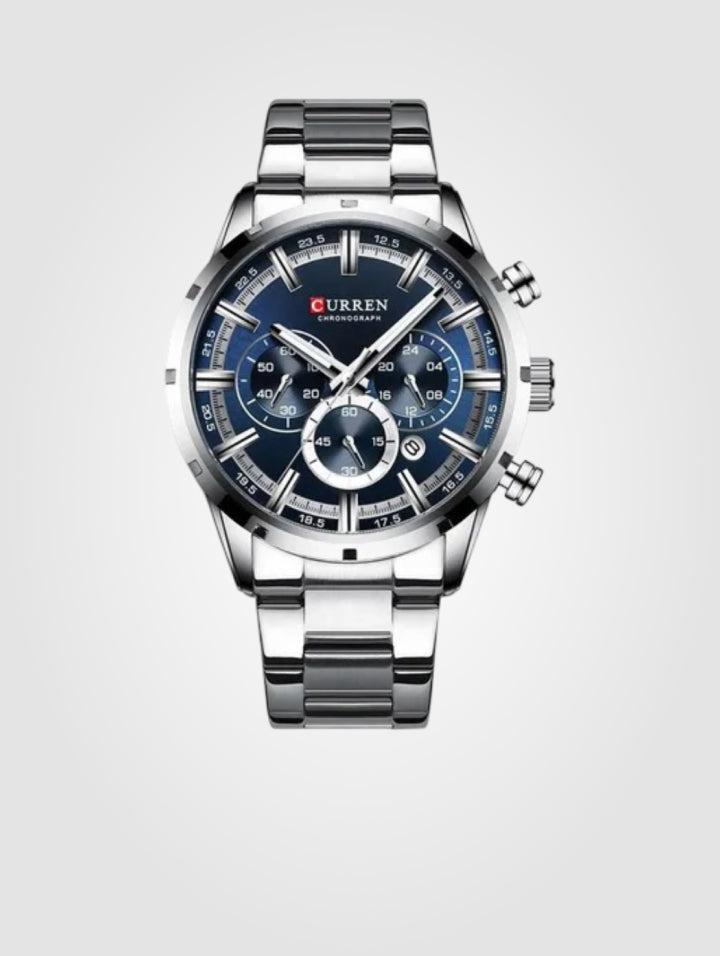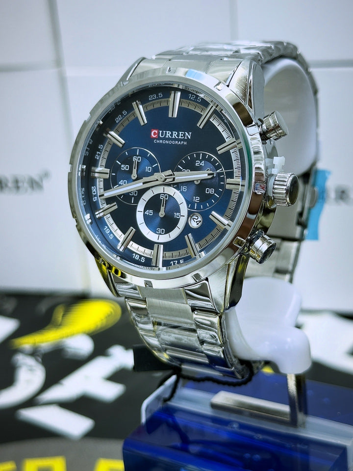 Curren 8355 Plata-Azul para hombre, Acero Inoxidable-Resistente al agua
