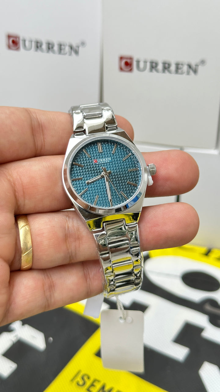 Curren 8439 Plata-Azul para Dama 34mm, Acero Inoxidable-Resistente al agua