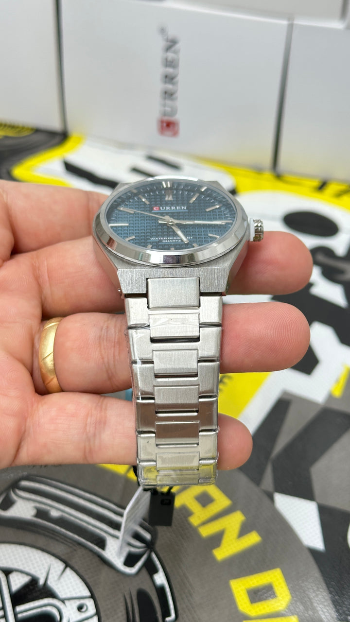 Curren 8439 Plata-Azul para Hombre 40mm, Acero Inoxidable-Resistente al agua