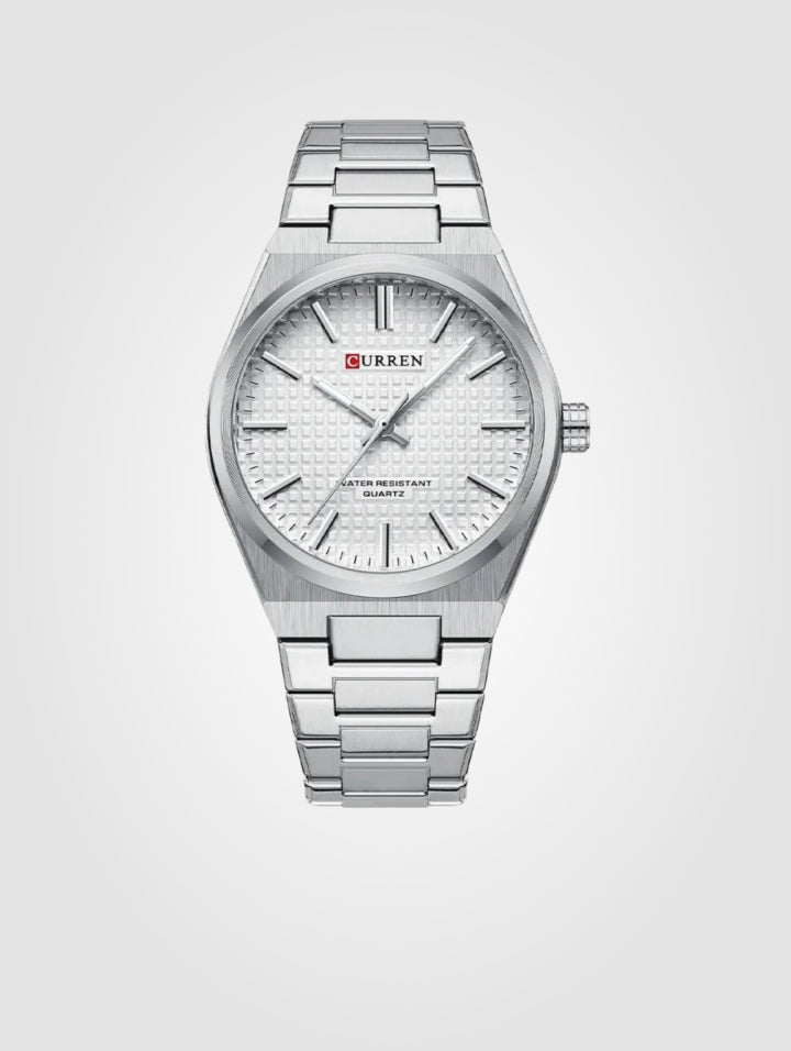 Resistente al agua 3 ATM , ideal para salpicaduras, lluvia o lavado de manos. (No apto para mar, piscinas con cloro o agua caliente). Diseño fino y minimalista, perfecto para cualquier ocasión.
