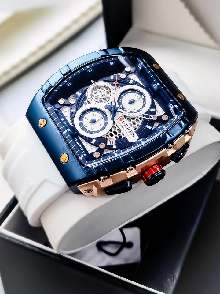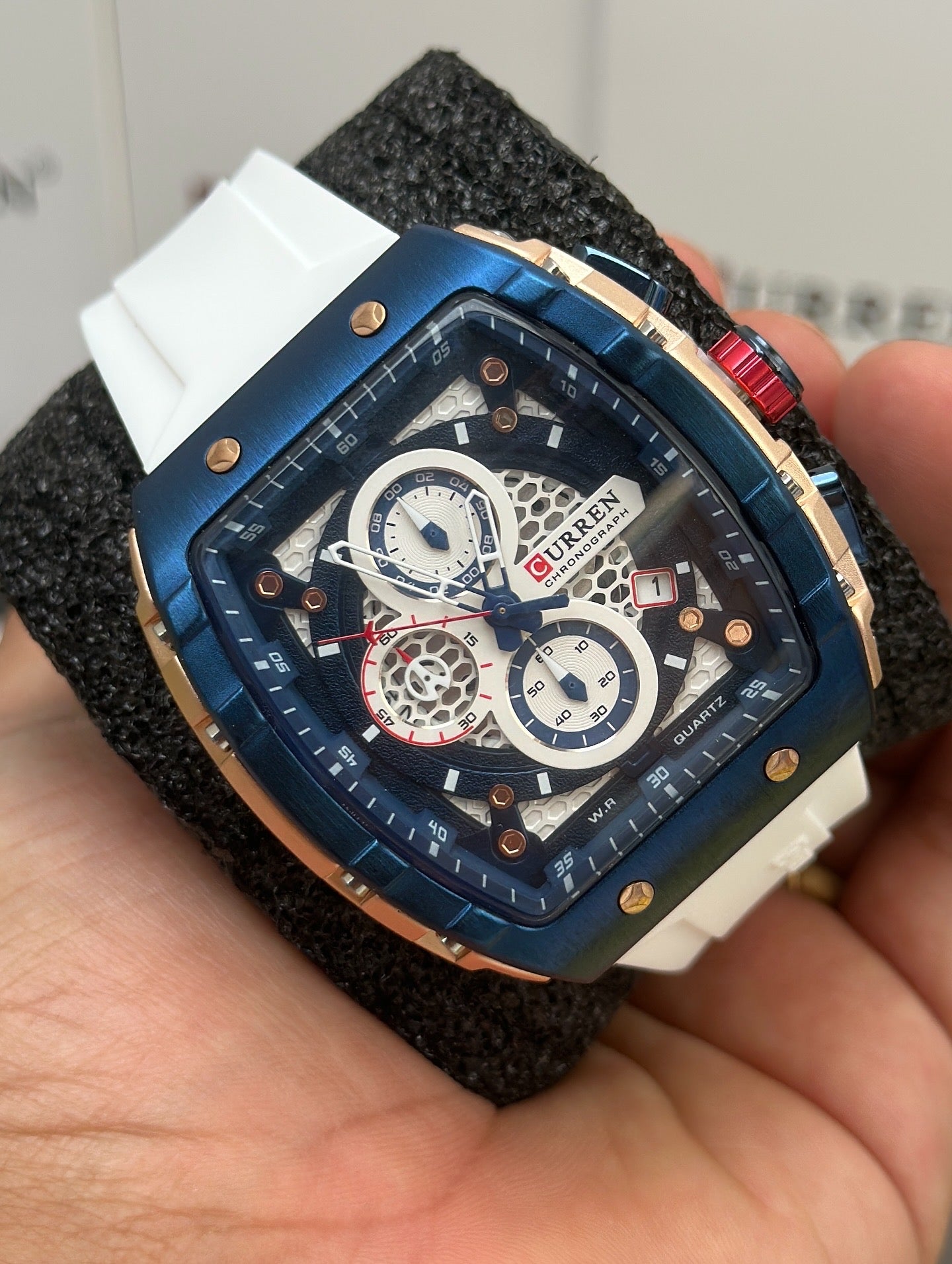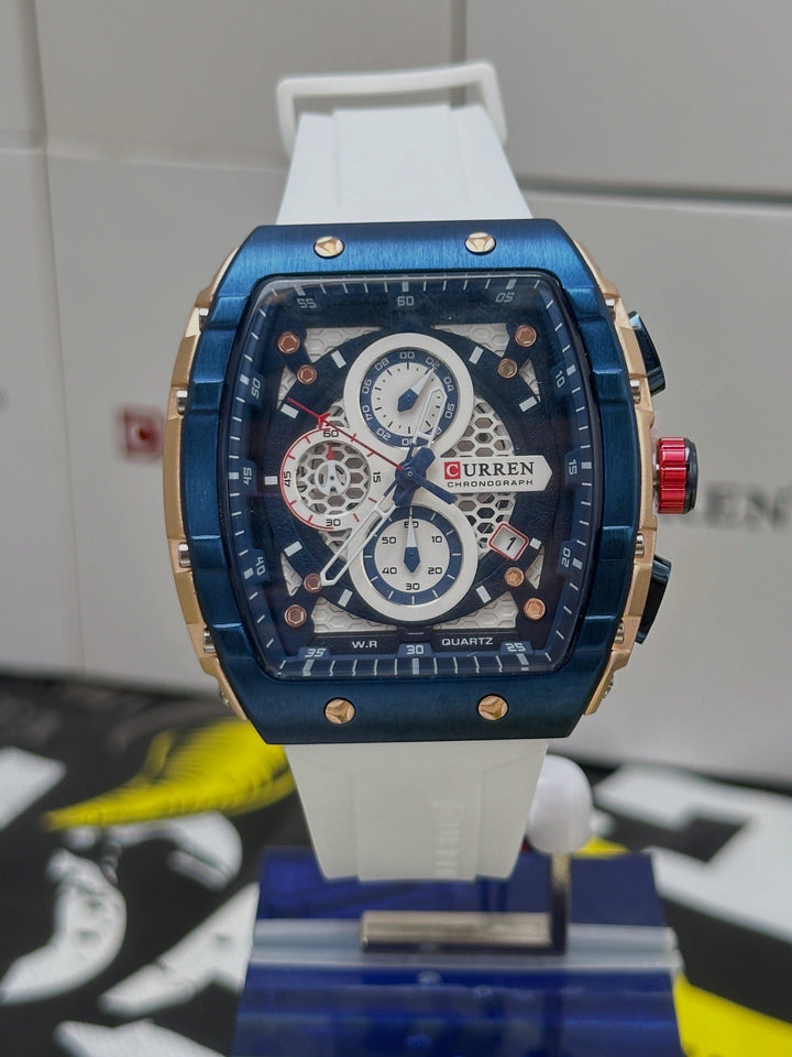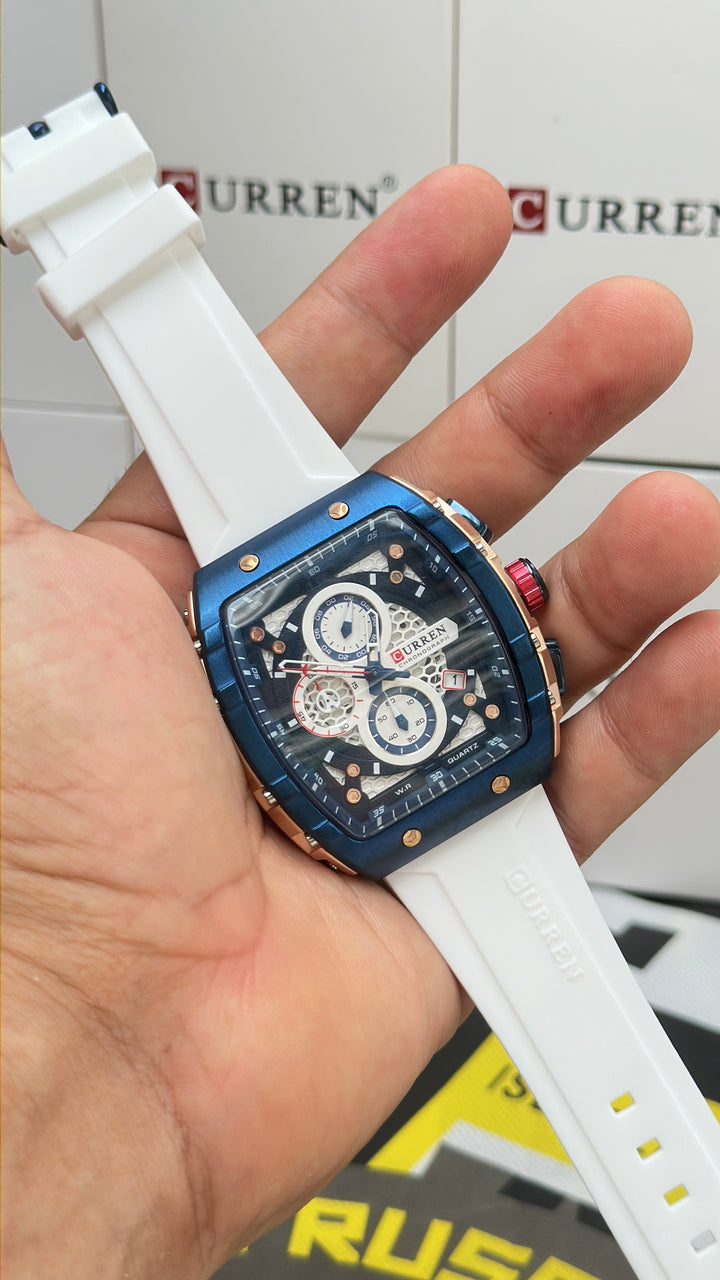 Reloj Curren Deportivo 8442 – Blanco y Azul – Resistente al Agua
