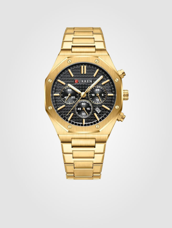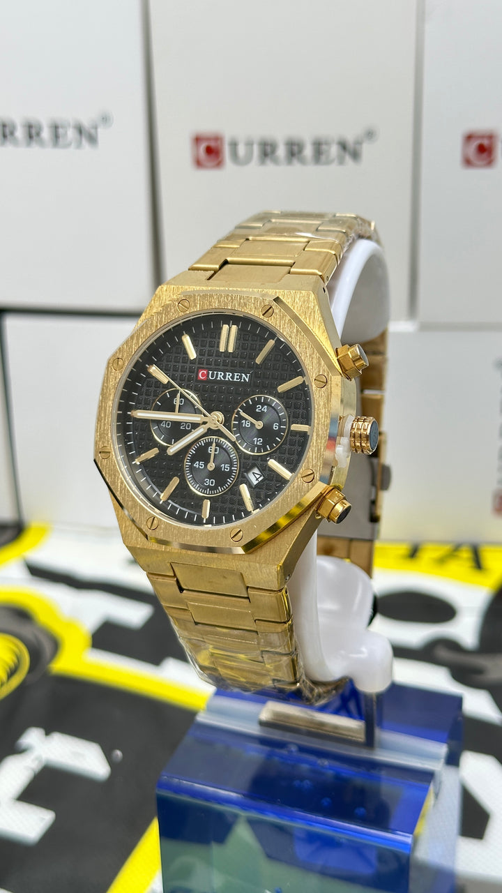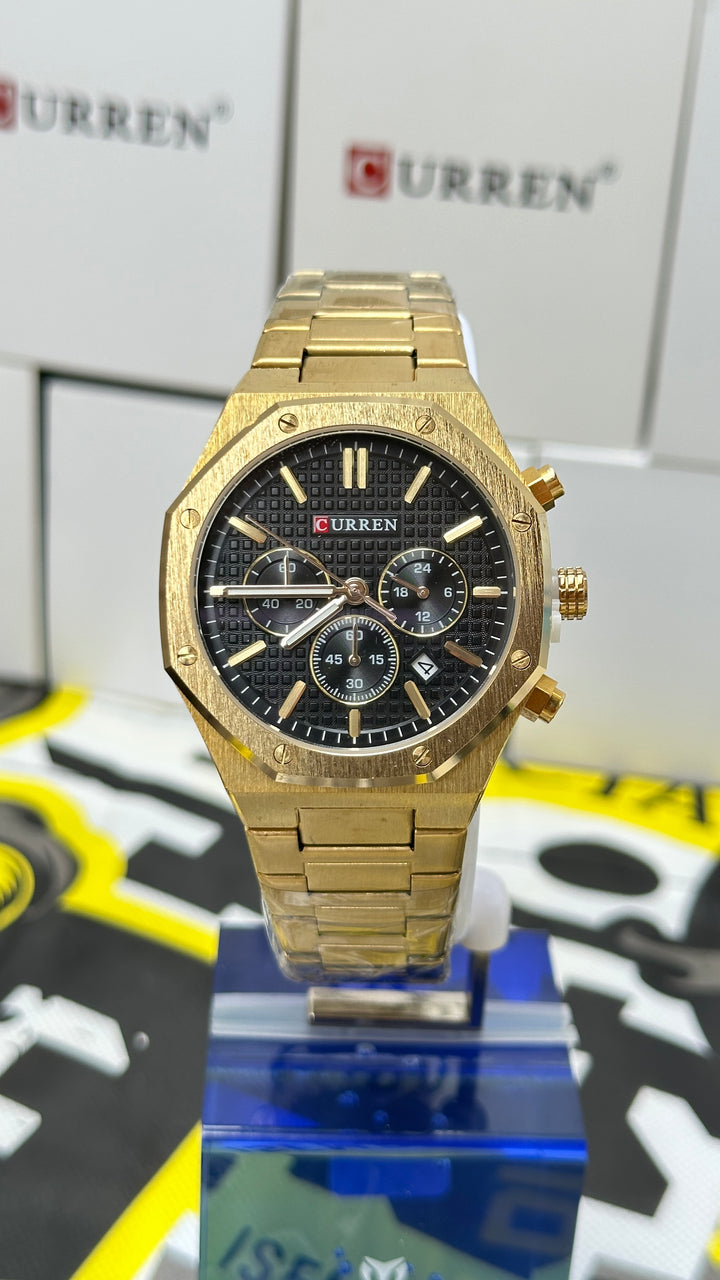 - Reloj Curren 8440 para hombre, elegante y resistente en diseño dorado Caja de 43 mm, correa de acero inoxidable, cronógrafos y calendario funcionales, con resistencia al agua de 30 metros. Ideal para uso diario con estilo.