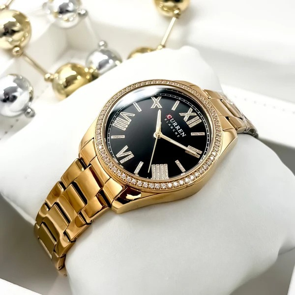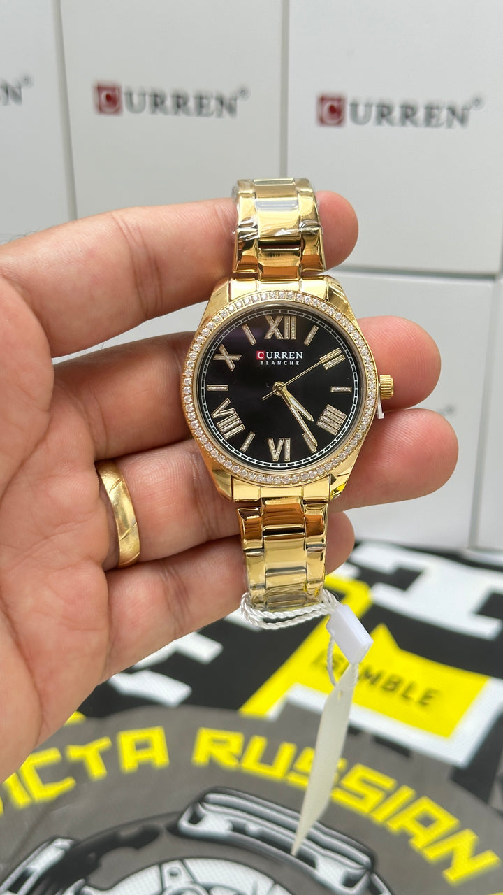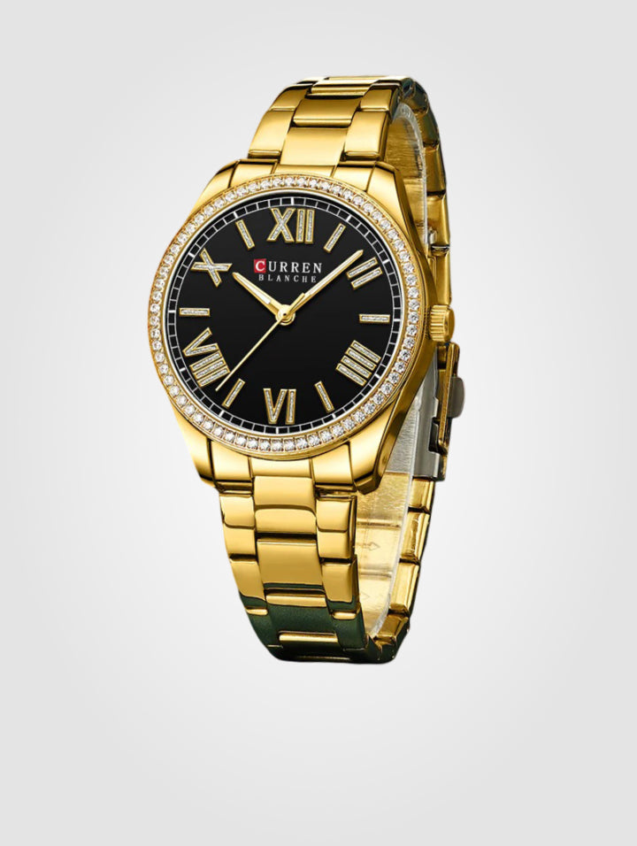Reloj Curren 9088-Dorado-Negro para Mujer – Acero Inoxidable y Resistente al Agua