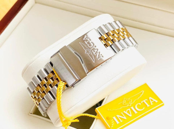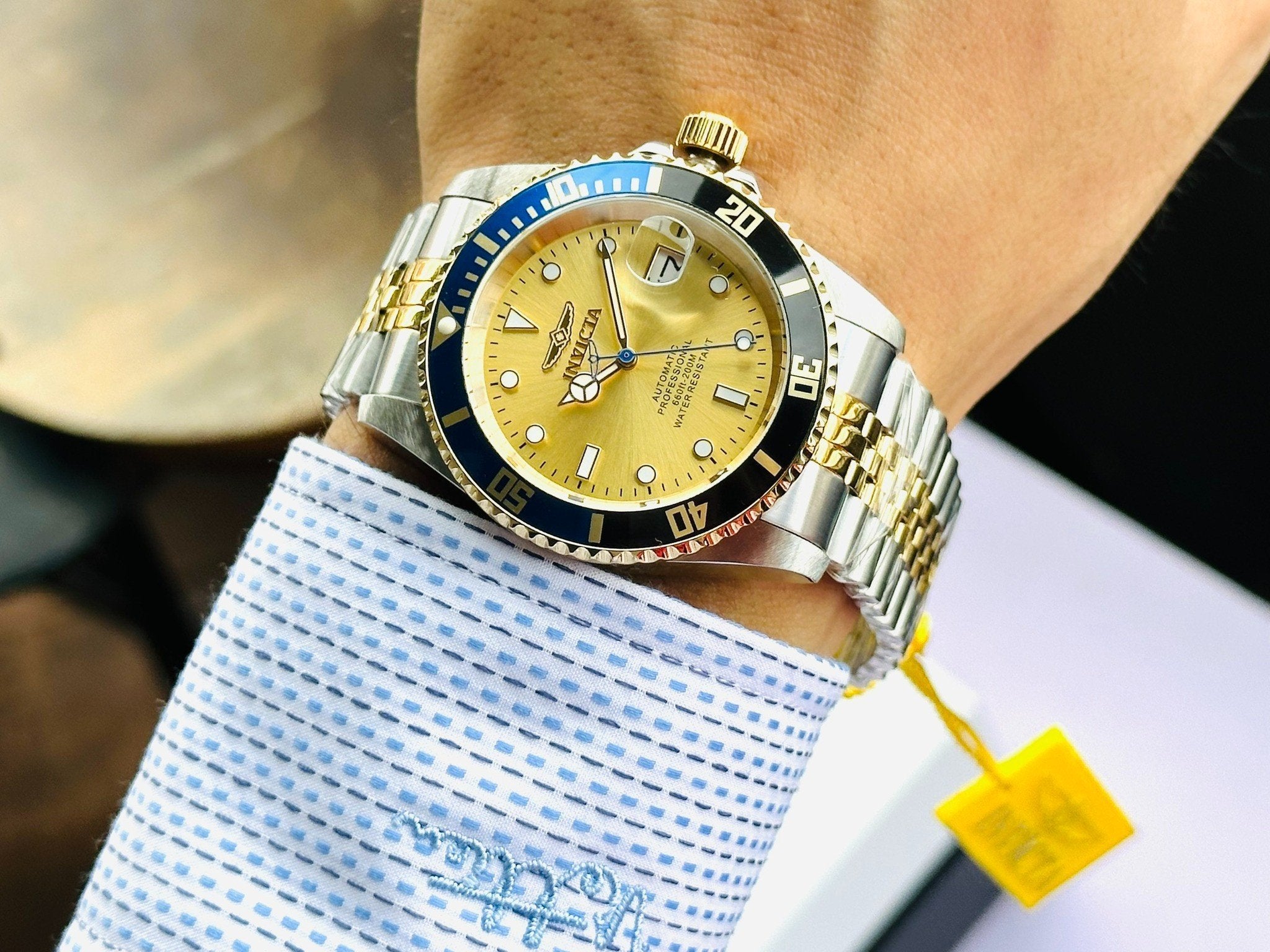 Descubre la excelencia del Reloj Invicta Pro Diver 29181. Con un diseño sofisticado, un pulso bicolor con tonalidad dorado con plateado y esfera dorada adornada de un bisel biclor negro-azul, este modelo combina estilo clásico con la precisión de una maquinaria automática, ideal para los verdaderos amantes de la relojería.