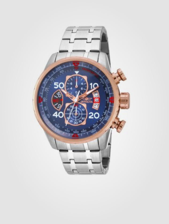 - El Invicta Aviator 17203 está diseñado para los amantes de la aviación y la precisión. Su caja de 48 mm en acero inoxidable, junto con un dial azul vibrante, lo convierten en un reloj llamativo y funcional. Perfecto para quienes buscan un accesorio robusto y sofisticado.