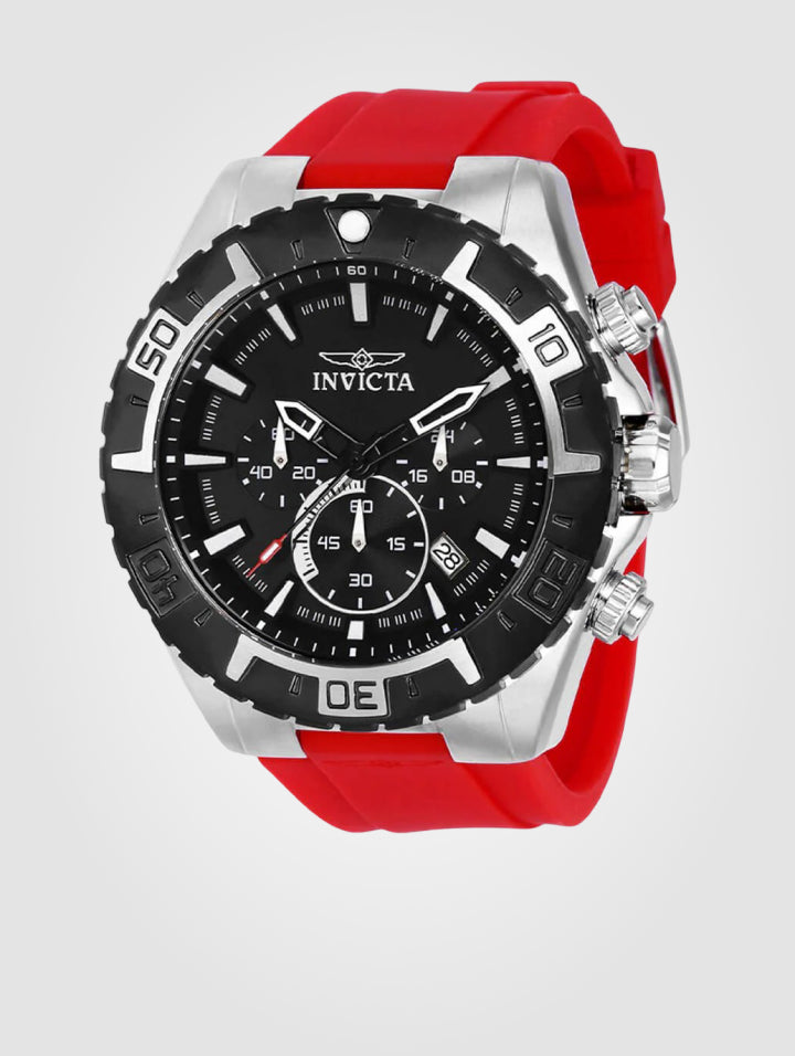 - El Invicta Aviator destaca por su color rojo, carátula negra, correa de silicona y cristal Flame Fusion. Con movimiento de cuarzo y resistencia al agua de 100 m, es un reloj versátil inspirado en la historia aeronáutica, ideal para quienes buscan estilo y aventura.