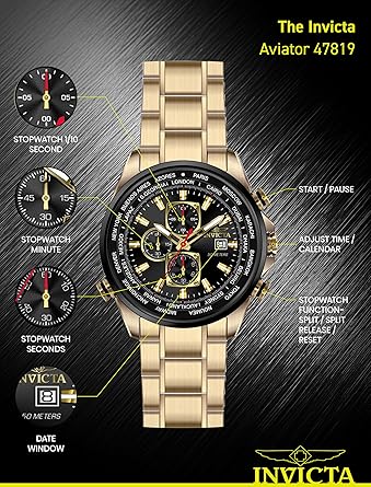 Reloj Invicta Aviator para hombre - 50 mm, Dorado. Negro (47819)