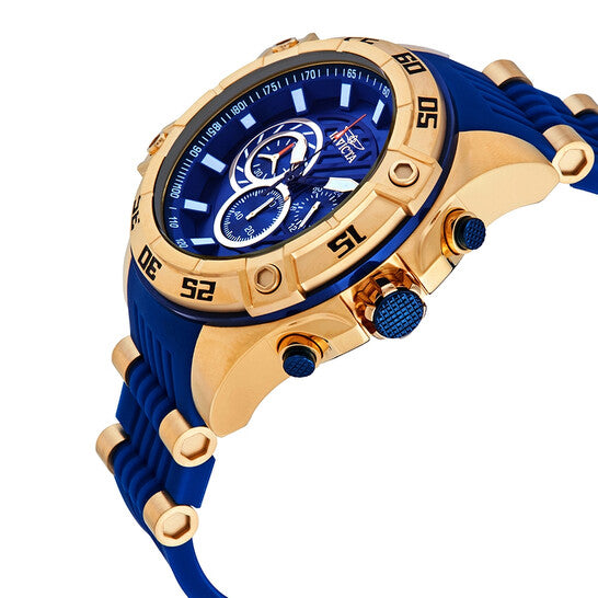 - Descubre la combinación perfecta de estilo y rendimiento con el Reloj Invicta Speedway 25508. Su diseño deportivo destaca con un pulso azul vibrante y una caja de acero en color dorado, logrando un equilibrio entre elegancia y dinamismo.