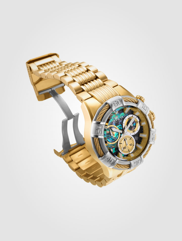 - Descubre la audacia y el lujo del Reloj Invicta Bolt 26542. Con un diseño acerado y pulso dorado, este modelo impone presencia con su bisel en guaya de acero y un llamativo dial multicolor, fusionando resistencia y estilo en una pieza única.