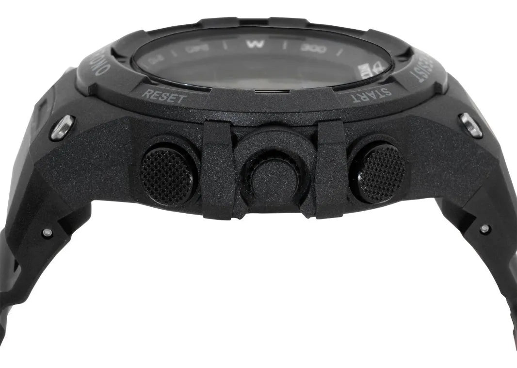 Reloj deportivo para hombre con caja de color negro y correa de poliuretano, diseñado para ser ligero y cómodo. Su pantalla digital en dial negro ofrece una lectura fácil del tiempo, acompañado de una resistencia al agua de 100 metros, ideal para uso diario.