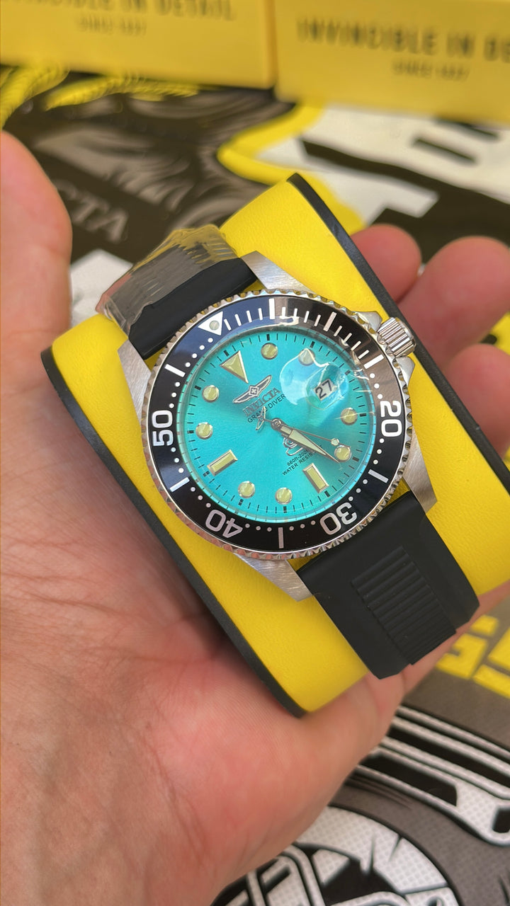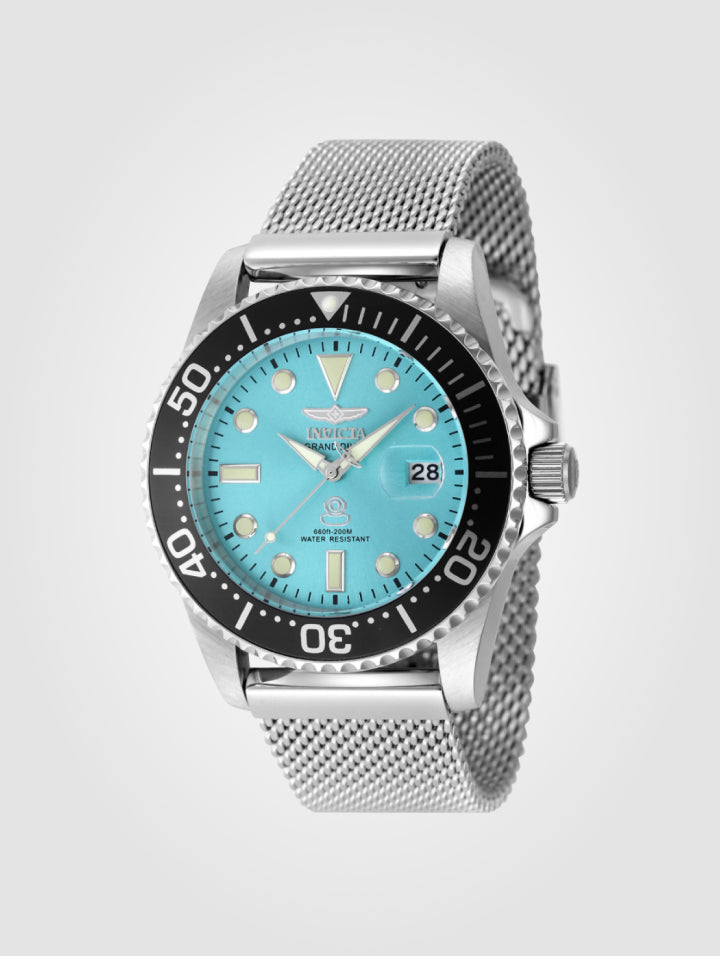 El Invicta Grand Diver para hombre (48213) es un reloj de 42 mm que destaca por su diseño deportivo y elegante. Con caja en acero plateado, fondo azul y bisel color negro, ofrece estilo y presencia. Incluye dos correas intercambiables (silicona y acero) y es sumergible hasta 200 metros, ideal para cualquier ocasión.