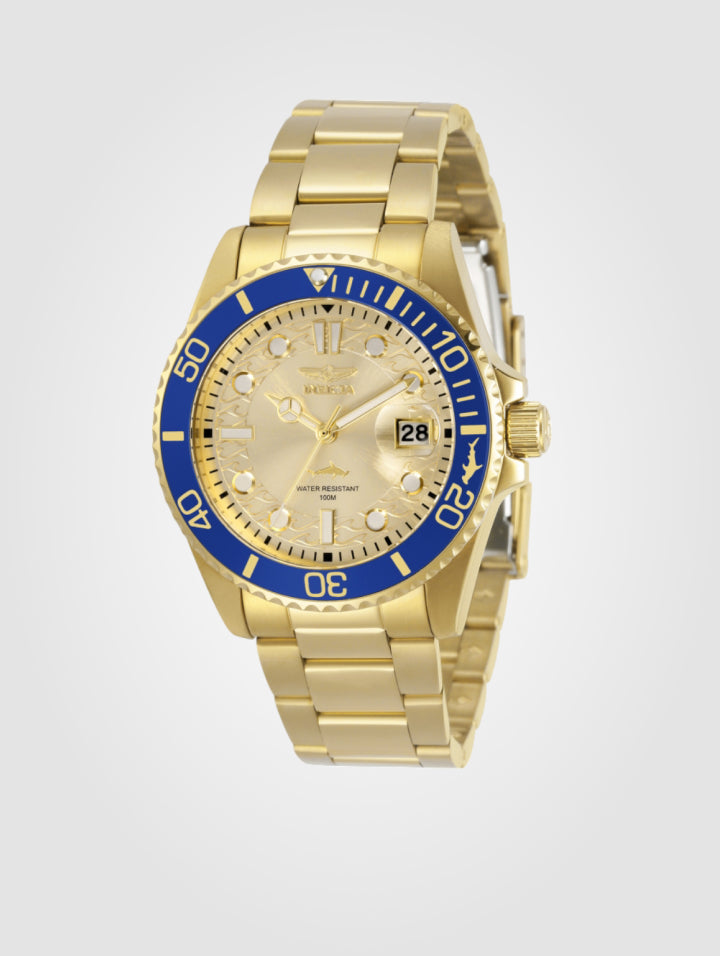 Descubre la elegancia y resistencia del Reloj Invicta Pro Diver 30485. Con un impactante diseño en color dorado y bisel color azul, este modelo combina lujo y funcionalidad, ideal para las mujeres que buscan un estilo sofisticado y deportivo a la vez.