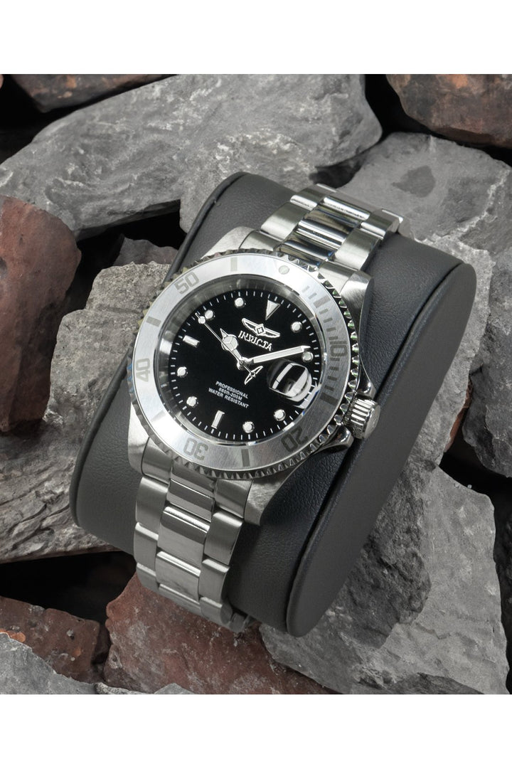 Descubre la fuerza y el carácter del Reloj Invicta Pro Diver. Con un diseño imponente, combina una esfera negra con un pulso Plateado en acero inoxidable resistente, logrando un equilibrio perfecto entre elegancia y deportividad.