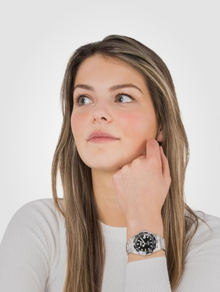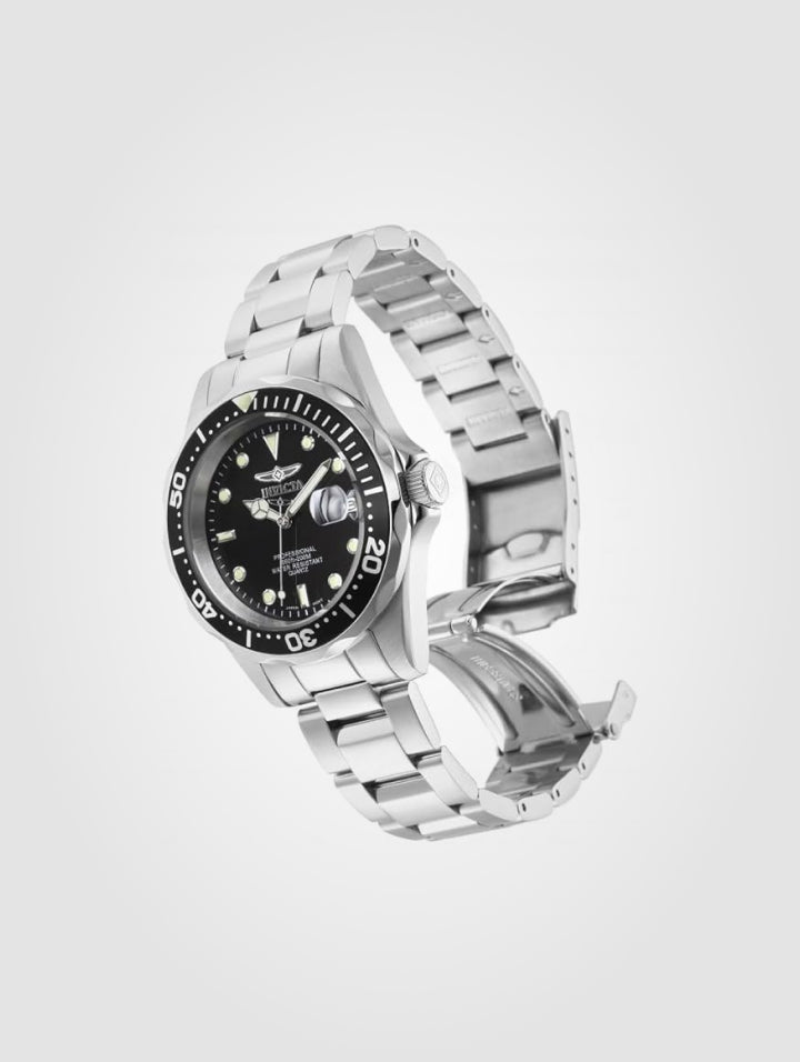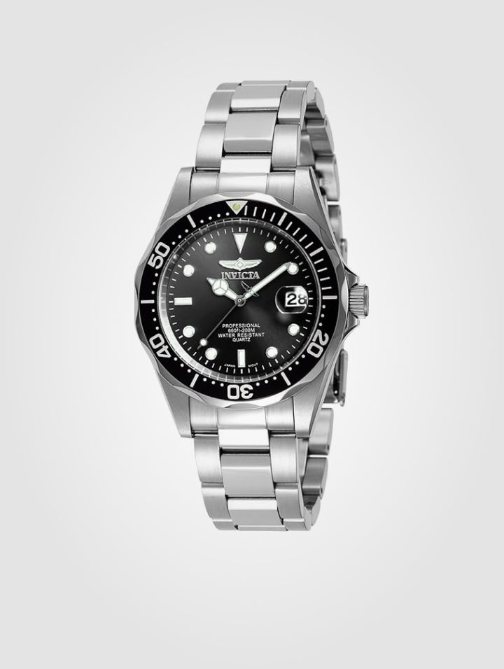 - Descubre la versatilidad y elegancia del Reloj Invicta Pro Diver 8932, un modelo unisex con un tamaño intermedio que se adapta perfectamente a cualquier estilo. Su diseño en color plata con esfera negra brillante combina sofisticación y deportividad, ideal para quienes buscan un reloj equilibrado y funcional.