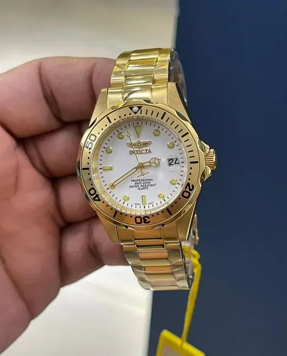 El Invicta Pro Diver 8938 combina lujo y sofisticación en un diseño perfecto para la mujer moderna. Su elegante acabado en dorado con esfera blanca crea un contraste llamativo y refinado, ideal para quienes buscan un reloj con carácter y estilo.