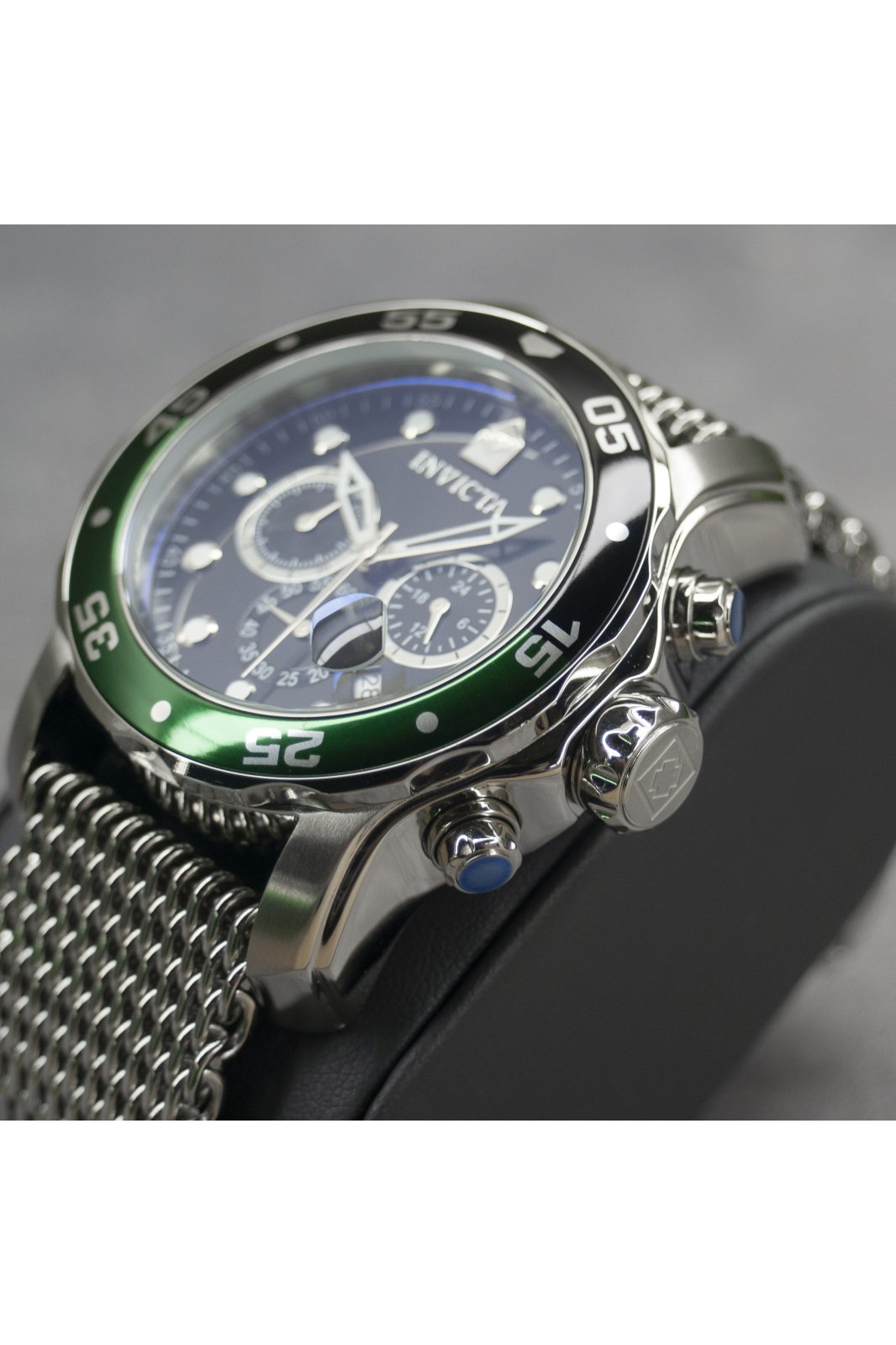 El Invicta Pro Diver destaca por su movimiento de cuarzo preciso, caja en acero y esfera de latón protegida por cristal Flame Fusion. Su correa de acero y resistencia al agua de 100 m lo convierten en un reloj elegante, resistente y de alto rendimiento.