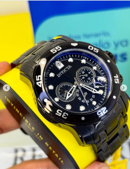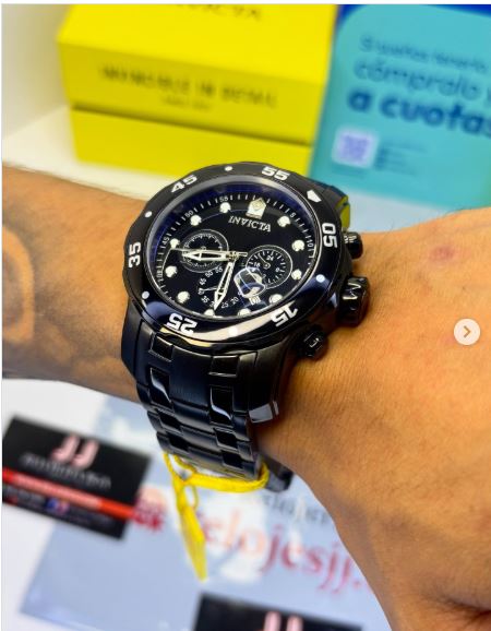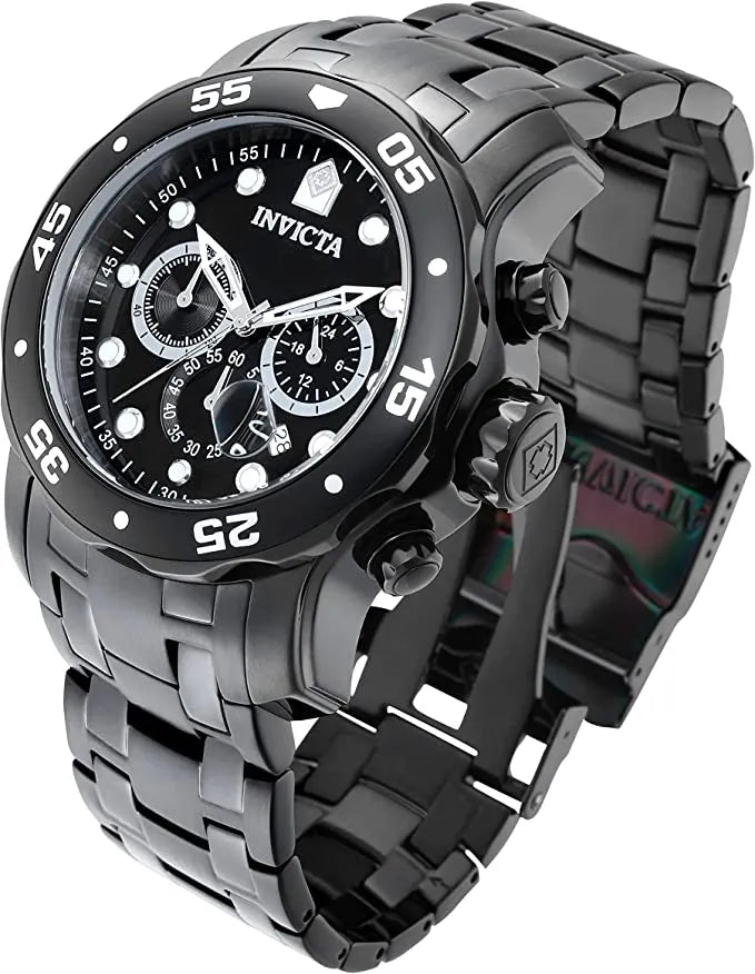 El Invicta Pro Diver 0076 destaca por su elegante combinación de acabado negro y dial negro, brindando un estilo sofisticado y llamativo. Su imponente caja de 48 mm y su correa de acero inoxidable le otorgan una presencia inigualable, ideal para quienes buscan lujo y carácter en un solo reloj.