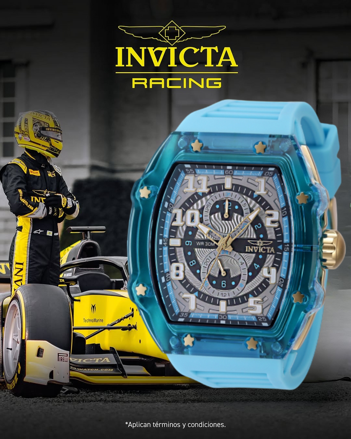 - Descubre la potencia y el estilo dinámico del Reloj Invicta Racing 48709. Con un diseño imponente en azul, negro y dorado, este modelo captura la esencia de la velocidad y la elegancia, ideal para quienes buscan un reloj con carácter deportivo y sofisticado.