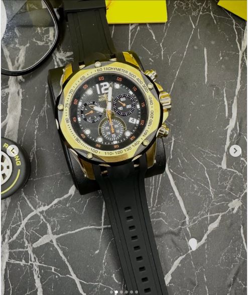 Descubre la elegancia y el rendimiento del Reloj Invicta Speedway 49841, uno de los más vendidos en Colombia. Su impactante diseño en color dorado con esfera negra lo convierte en un accesorio imprescindible para quienes buscan lujo y funcionalidad en un solo reloj.