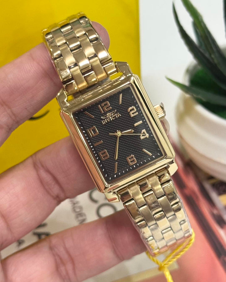El Invicta Vintage en color oro es la máxima expresión de lujo y elegancia, ideal para la mujer que busca un accesorio cómodo y exclusivo. Su diseño resplandeciente en acero quirúrgico inoxidable, lo convierte en una pieza única que eleva cualquier look.