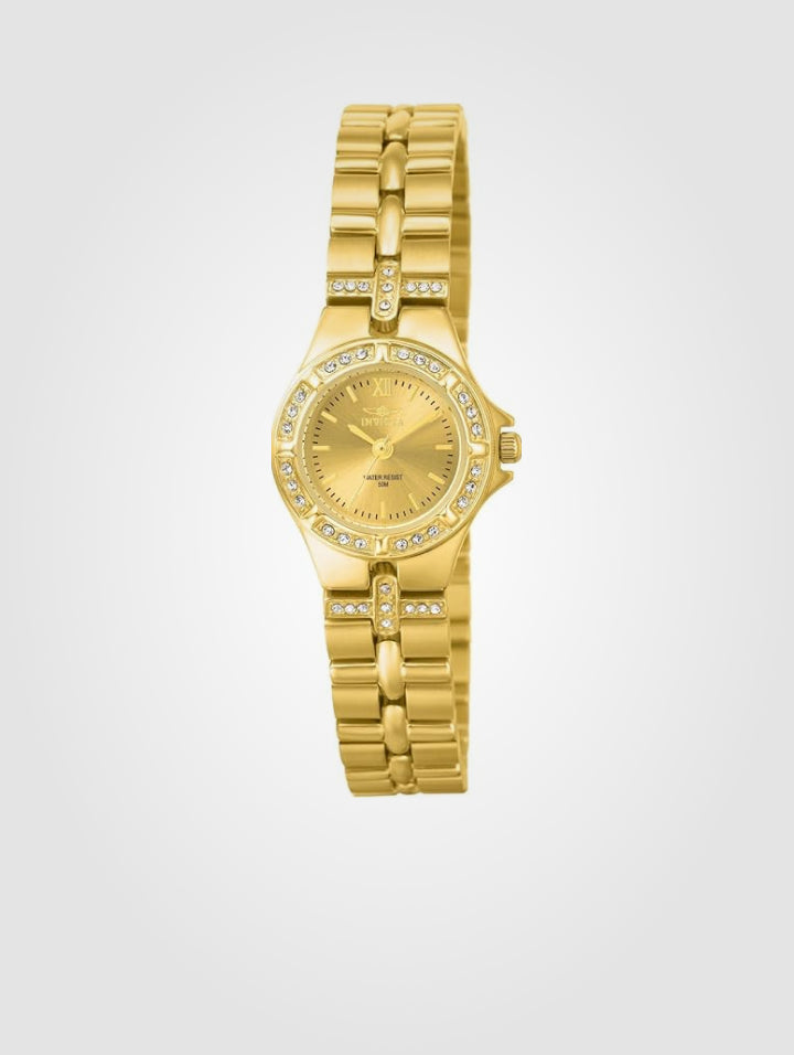- El Invicta Wildflower 0134 es el equilibrio perfecto entre delicadeza y elegancia, diseñado para mujeres sofisticadas que buscan un reloj fino y distinguido. Su acabado en color dorado y su diseño delgado pero refinado lo convierten en un accesorio ideal para cualquier ocasión, aportando un toque de lujo discreto.