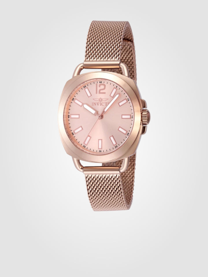 El Invicta Wildflower en color oro rosa es la máxima expresión de lujo y elegancia, ideal para la mujer que busca un accesorio cómodo y exclusivo. Su diseño resplandeciente en acero quirúrgico inoxidable, lo convierte en una pieza única que eleva cualquier look.
