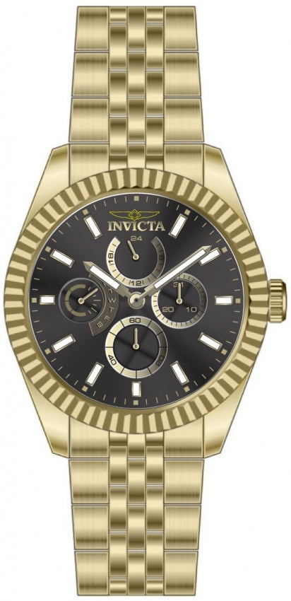 El Invicta Specialty 49541 es un reloj que destaca por su elegancia y distinción. Su construcción en acero inoxidable completamente dorado le otorga un acabado refinado y sofisticado, mientras que su esfera dorada crea una armonía perfecta que transmite lujo y estilo atemporal.