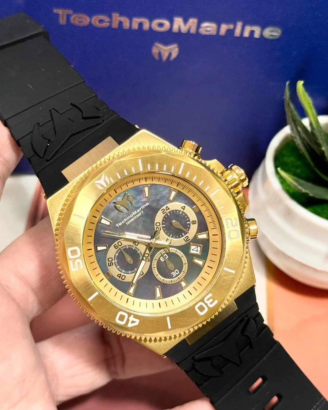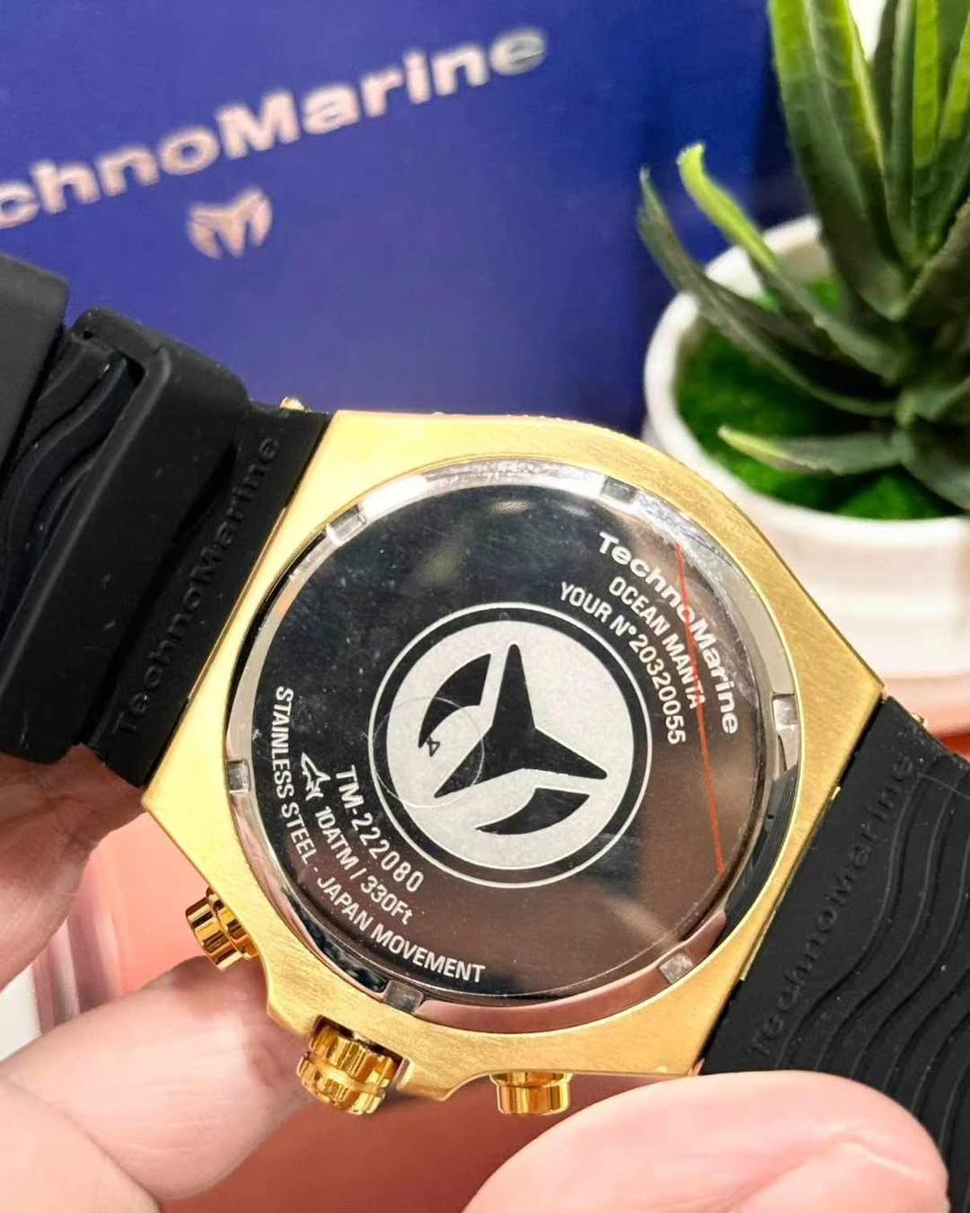 El TechnoMarine Manta TM-222080 es la combinación perfecta de elegancia y deportividad, diseñado para quienes buscan un reloj sofisticado con un toque moderno. Su pulso de silicona brinda comodidad y resistencia, mientras que su caja en dorado con negro añade un toque de lujo y distinción.