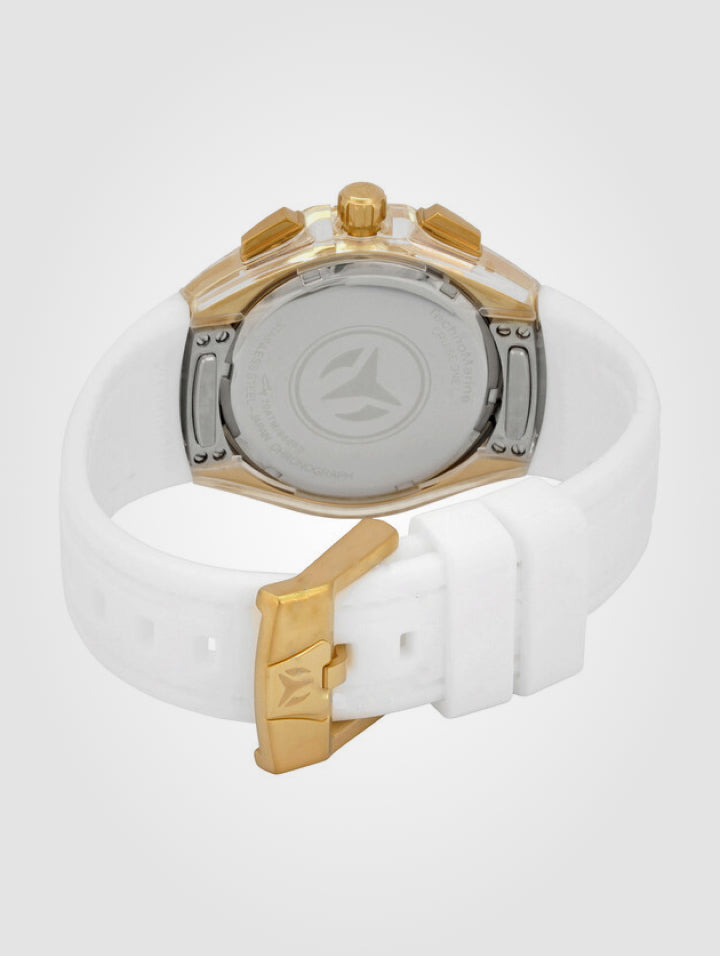 - Este sofisticado modelo presenta un pulso blanco que combina a la perfección con su bisel y caja color dorado, creando un diseño vibrante y moderno. ofreciendo estilo y funcionalidad para el día a día.