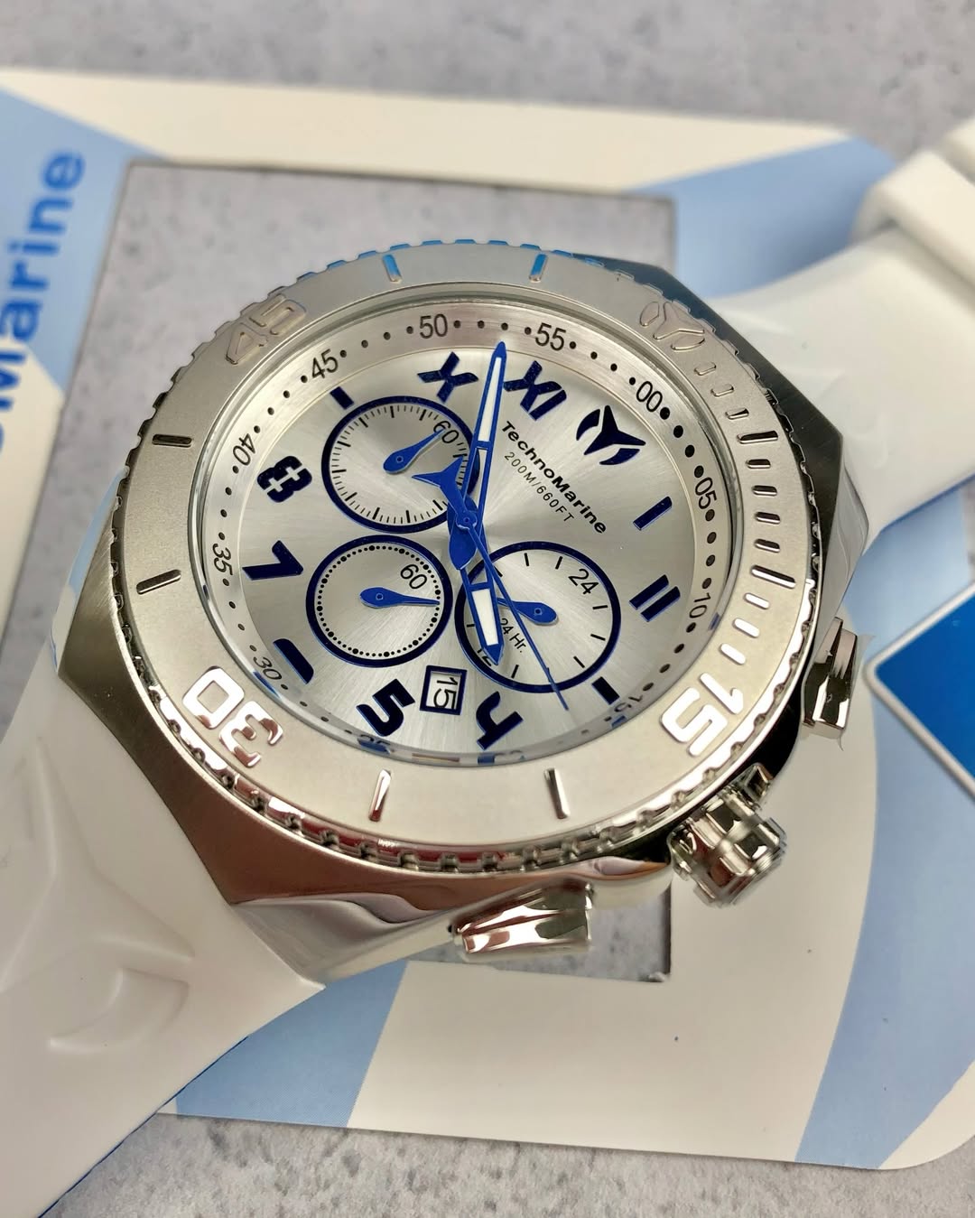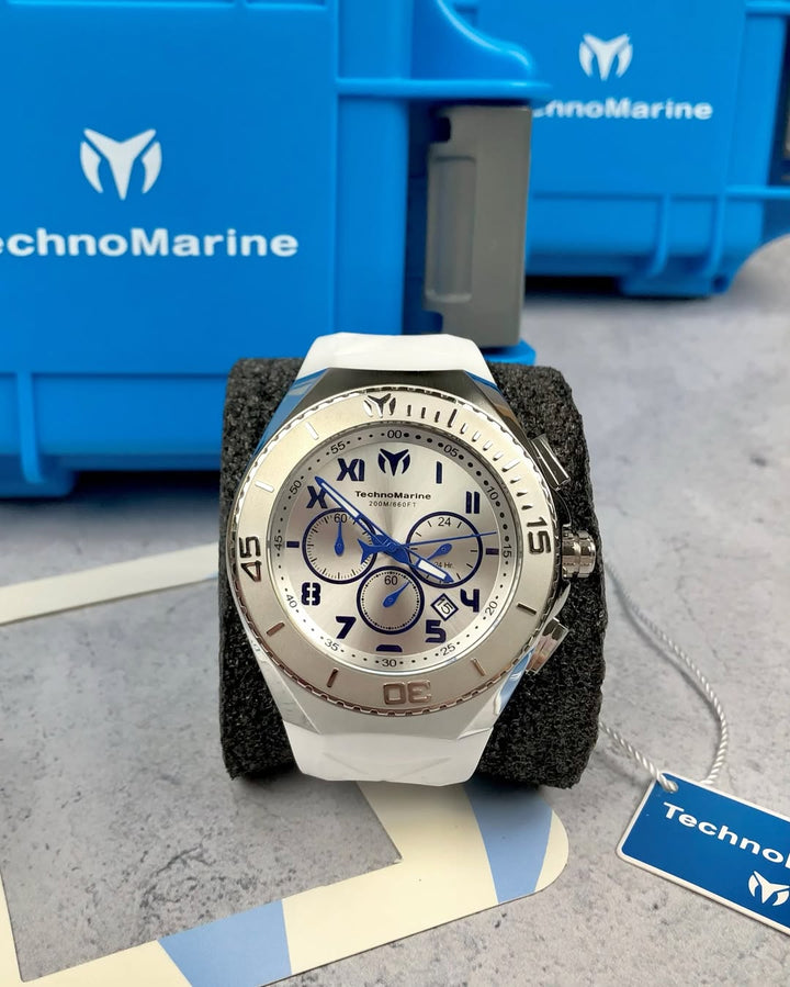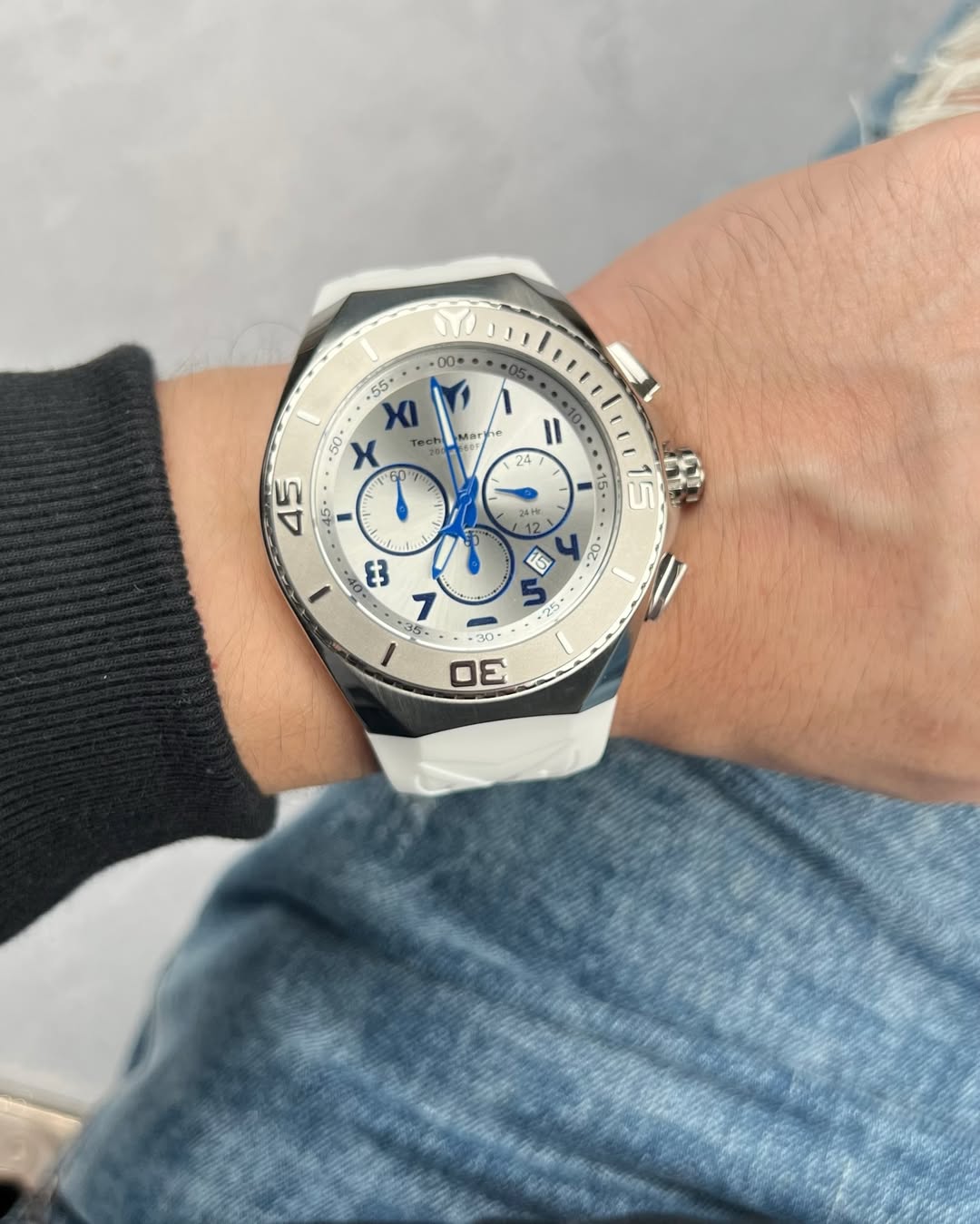 - El TechnoMarine deportivo para caballero combina un diseño audaz en blanco, azul y plateado, materiales de alta calidad y resistencia al agua, ofreciendo estilo y durabilidad para cualquier ocasión. ¡Hazlo tuyo hoy!