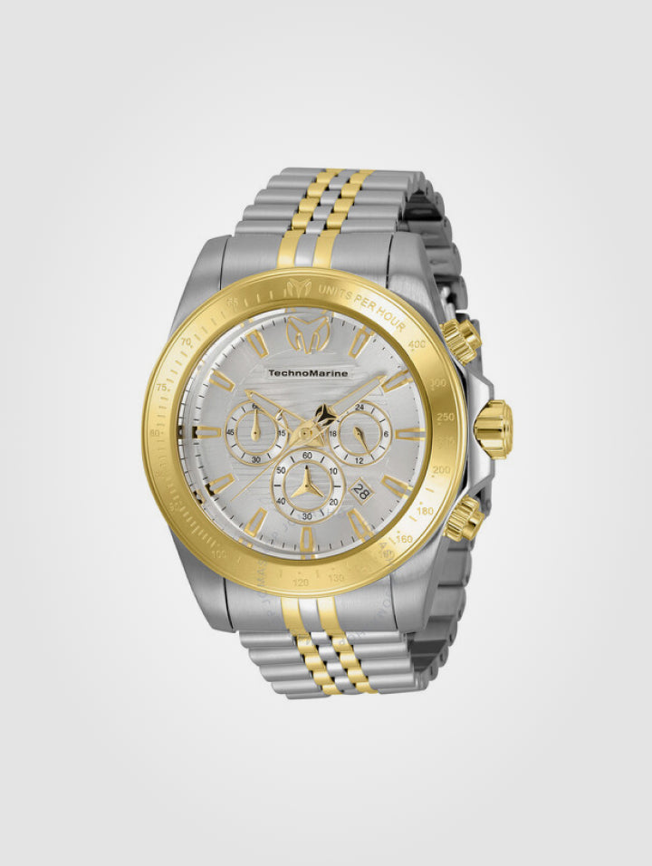 - Con un diseño sofisticado en acero inoxidable plateado y detalles dorados, este reloj destaca por su fondo blanco que realza su estilo clásico y moderno. Además, su resistencia al agua de hasta 200 metros lo hace perfecto para cualquier aventura, combinando lujo y funcionalidad en un solo accesorio.