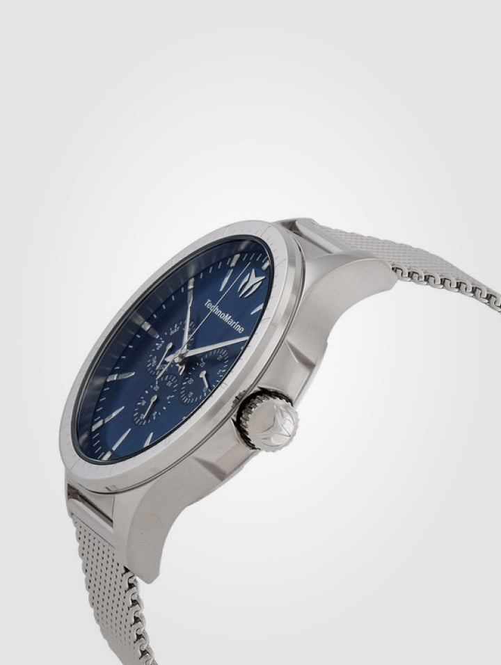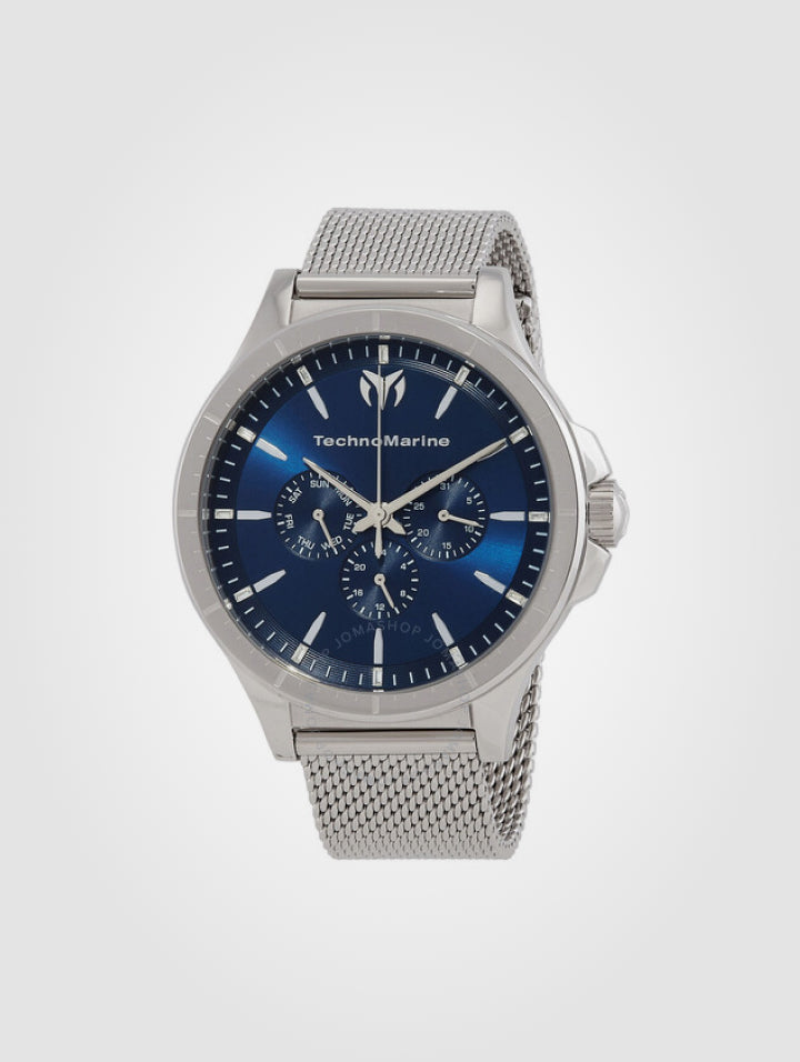 - Diseñado en acero inoxidable color plata con una pulsera fina, este reloj ofrece un look elegante y moderno. Su fondo azul le aporta un toque distintivo, ideal para quienes buscan un accesorio versátil y refinado.