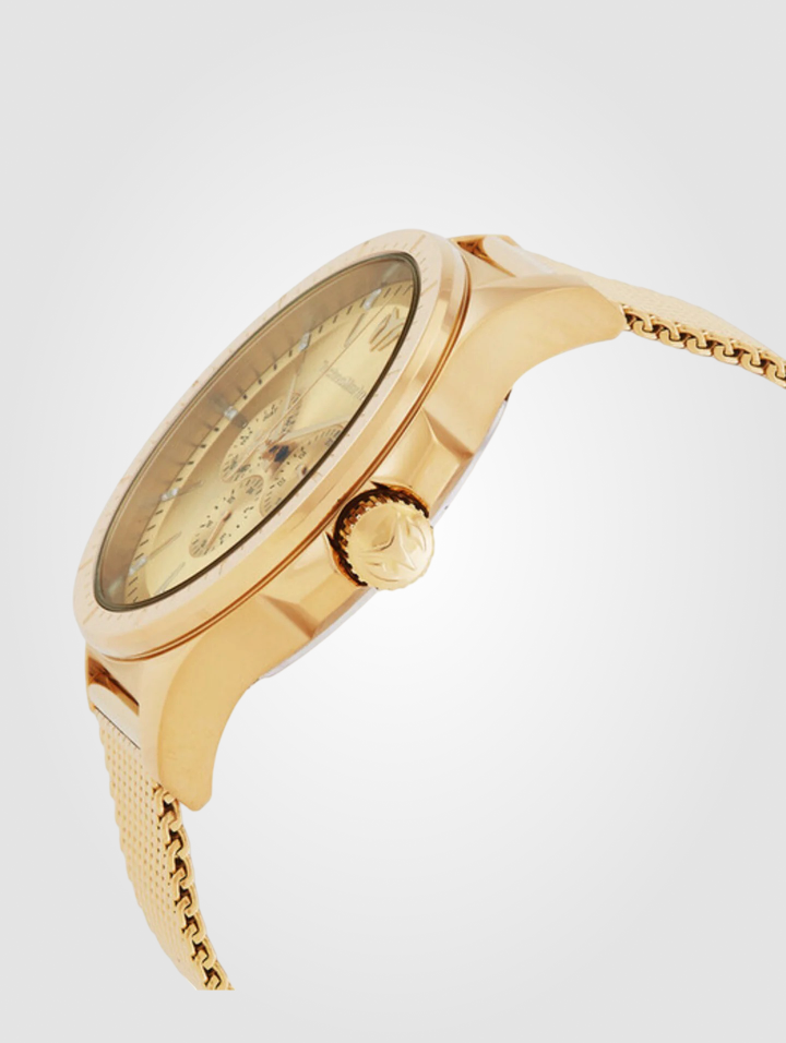 - Con un diseño imponente, combina una esfera negra con un pulso dorado resistente, logrando un equilibrio perfecto entre elegancia y deportividad.