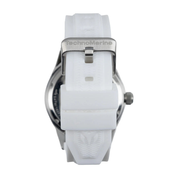 Technomarine Sea Dream TM-724001 – Un reloj elegante y resistente, diseñado para caballeros que buscan estilo y funcionalidad. Con caja de acero inoxidable en tono plateado de 42 mm, correa de silicona blanca y movimiento japonés de cuarzo, combina lujo y durabilidad.